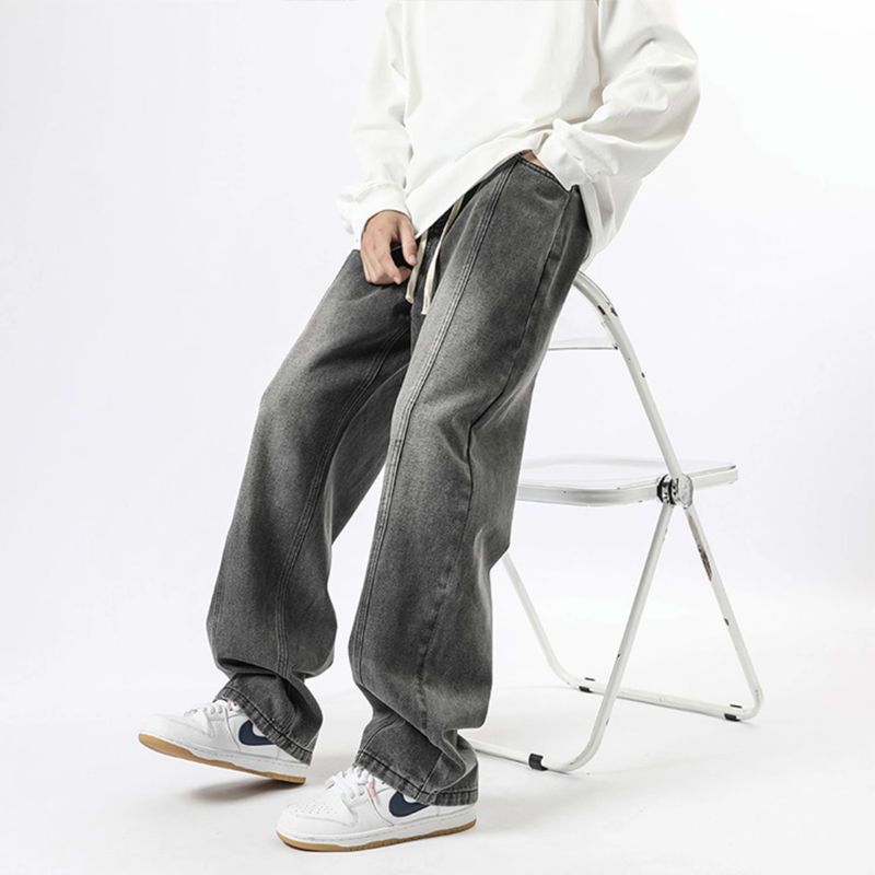 Jeans men's spring and autumn American style gradient fashion pants with loose and straight design, wide leg casual long pants