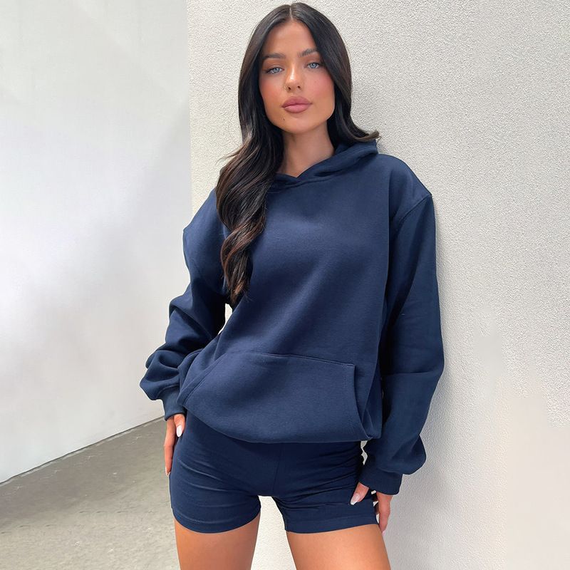 JY24375 Autumn 2025 New Women's Fashion Simple Style Casual Hooded Sweatshirt Tight Shorts Sports Set for Women