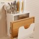 Organizer da parete per cucina - Porta spezie con ventosa, ganci per utensili e coperchi, contenitore multifunzionale (design salvaspazio)