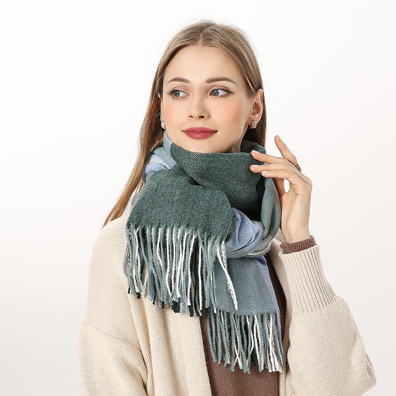 Korean version of large plaid imitation cashmere scarf for women's warm tassel shawl, versatile for men's autumn and winter new scarf