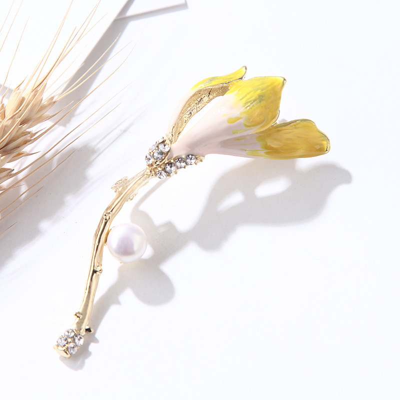 Versione coreana della nuova spilla originale in perle d'acqua dolce naturale con goccia di olio di cristallo, vassoio vuoto, scatola regalo trasparente