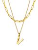 Laatikui Collana a strati in oro con lettera V per donne e ragazze, girocollo con catena a graffetta in acciaio inossidabile, collana iniziale con torsione 3D