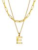 Laatikui Gold Layered Initial Necklace Comes 2 Pieces Separated Gold Necklace: Simple 3D twist designed letter charm A-Z pendant long necklace with short paperclip chain choker. Each can be worn Separately or Together. Wearing an Initial Name Necklace is the most classic way to make a statement. You can choose letters related to your name, or letters related to family and friends. Show off the name or let the important name close to your heart. Keep it for yourself or give as the ultimate personalised gift.Hypoallergenic Letter Pendant Necklace Made of high quality brass material, 18K real gold plated, nickel free and lead free, no harm to skin. Minimalist look can match with other women necklace to layering your style.3D Twist Letter Gold Necklace Alpabet Letter E Pendant Size: 22.5mm x 12.3mm, Thickness: 3mm; Long Necklace: 1.8mm width, 18" + 2" 18K gold plated rolo chain; Short Chain Choker: 5mm width, 14" + 2" 18K gold plated paperclip chain. High polish finished, smooth surface, comfort to wear for everyday and night. Upgrade lobster claw, easy close and open, more durable ever.Personalized Statement Name Jewelry Gift Laatikui Gift Package with black velvet. Ready to be gifted for your Mother, Father, Wife, Husband, Girl, Boys and your Favorite Friends on Valentine's Day, Anniversary, Birthday, Mother's Day, Thanksgiving Day, Vacation, Holiday, Parties, Christmas, Halloween, Wedding Celebration.Comes 2 Pieces Separated Gold Necklace: Simple 3D twist designed letter charm A-Z pendant long necklace with short paperclip chain chokerMade of high quality brass material with 18K real gold plated, this layered initial necklace is nickel free and lead free, no harm to skinAlpabet Letter E Pendant Size: 22.5mm x 12.3mm, Thickness: 3mm; Long Necklace: 1.8mm width, 18" + 2" rolo chain; Short Chain Choker: 5mm width, 14" + 2" paperclip chainMinimalist look can match with other women necklace to layering your stylePersonalized statement name jewelry gift for Valentine's Day, Anniversary, Birthday, Mother's Day, Thanksgiving Day, Parties, Christmas, Wedding Celebration