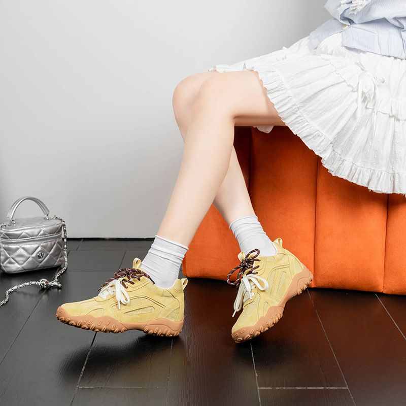 Splicing breathable mesh double shoelaces women's sports and casual shoes with an inner height increase of 3 centimeters, German training shoes, white shoes