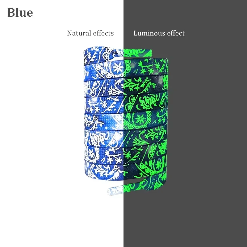 Flat Luminous Shoelaces for Sneakers Fluorescent Glow-in-the-dark Printing Cashew Flower Splash Ink Shoe Laces for Woman Man