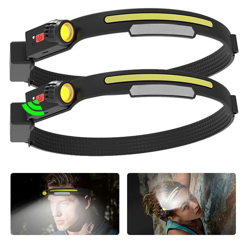 Cross-Border Outdoor Running Headlamp Multi-Functional Fishing Waterproof Mining Lamp Rechargeable COB Sensor Cycling Strong Light Headlamp