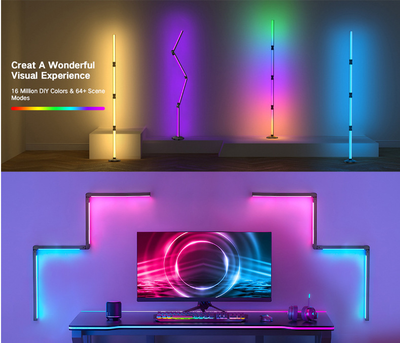 Lampada da terra Bluetooth fai da te Lampada da terra pieghevole Lampada da tavolo colorata Tuya WiFi Lampada angolare colorata RGBIC