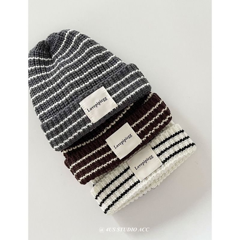Loose fitting black and white striped woolen hat for women in autumn and winter, warm ear protection, knitted hat, cute pile up hat