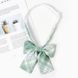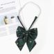 Camicia stile college giapponese senza cravatta a righe, accessorio verde scuro con fiocco e fiore per donna
