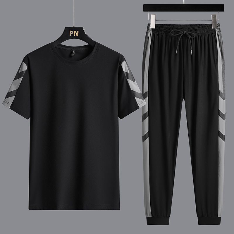 LazyZoom 2025 Set estivo da uomo in seta sottile e ghiaccio, a maniche corte, casual, sportivo, in tre pezzi, elastico, ad asciugatura rapida, con pantaloncini