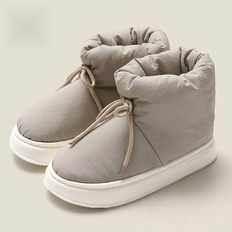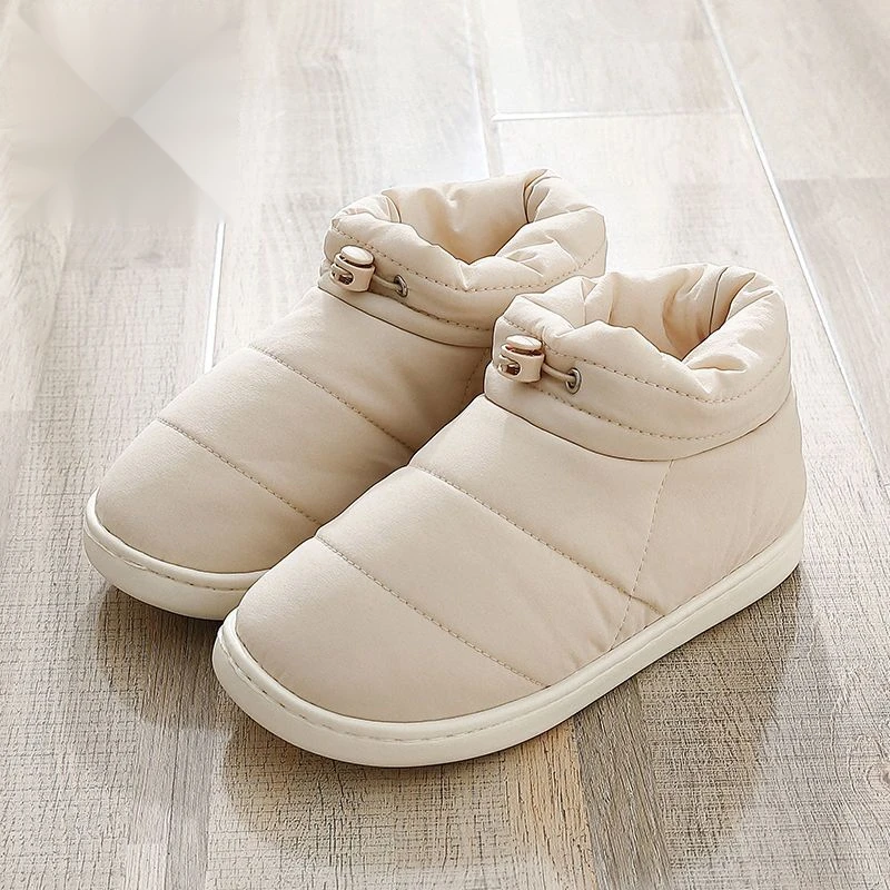 Men's cotton slippers are cold resistant, warm, and waterproof in winter. Down and waterproof for home use. Non slip couples add plush bags and cotton shoes for men