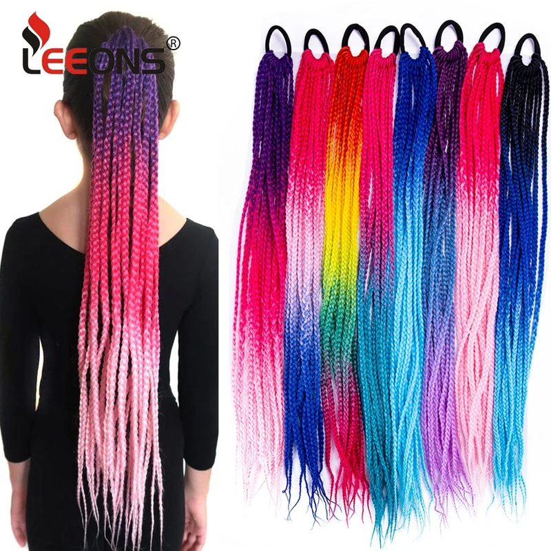 Leeons Synthetic Girls Hair Extensions Accessories Colorful Box Crochet Hair Ponytail Rubber Bands Twist Braid Rope For Kids