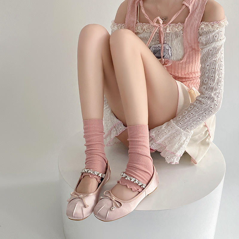 Imagine slipping these on with a pleated skirt and loafers for a schoolgirl-chic ensemble. Or, layer them over tights in winter for extra warmth without bulk. Whether you're heading to a café date, dance class, or just lounging at home, these socks keep you stylishly cozy.