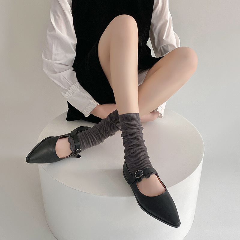 Scaldamuscoli Stivali Moda Cotone Stile Balletto Calzini Impilati Donna Primavera e Autunno Tinta Unita Legno Orecchie Bordo Tubolare Medio Lolita Ragazza Pizzo Copri Polpacci