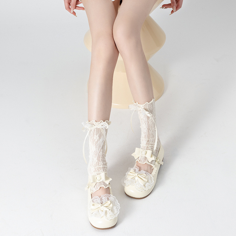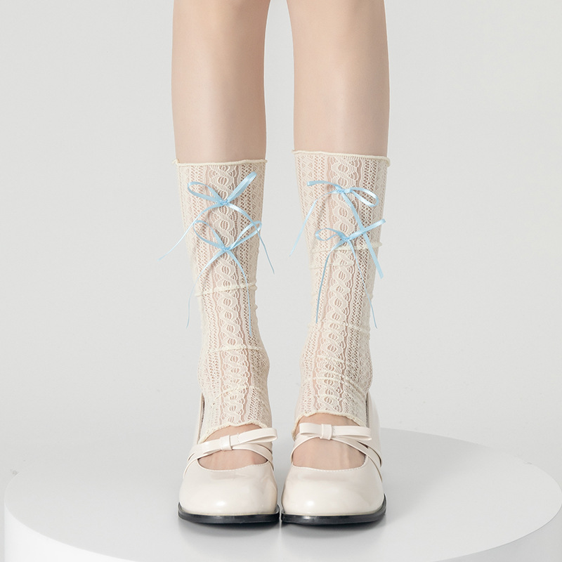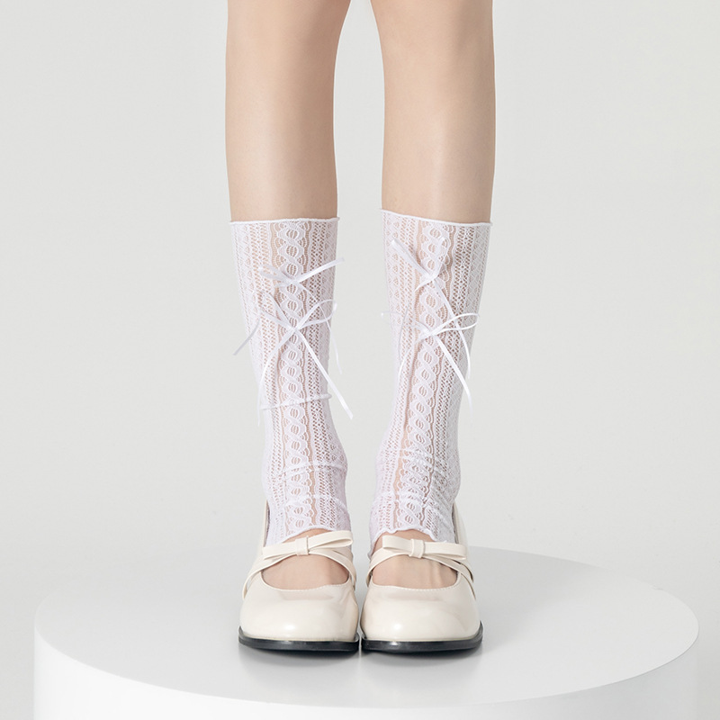 Scaldamuscoli, stivali, calzini alla moda in cotone per donna, primavera ed estate, calzini sottili stile balletto, coprigambe con fiocco, tubo centrale, orecchie in legno Lolita