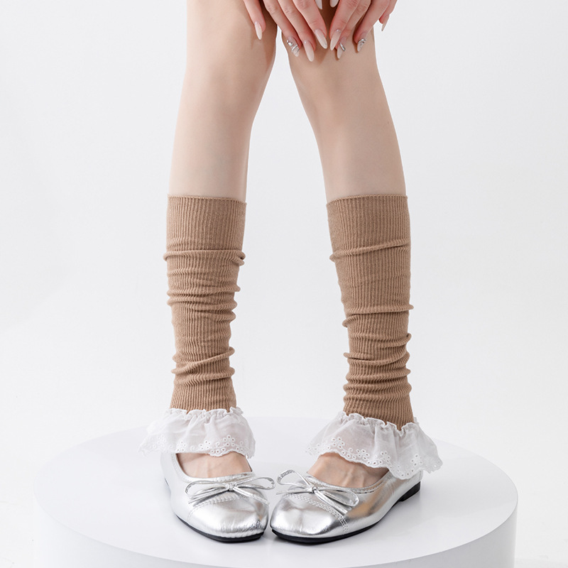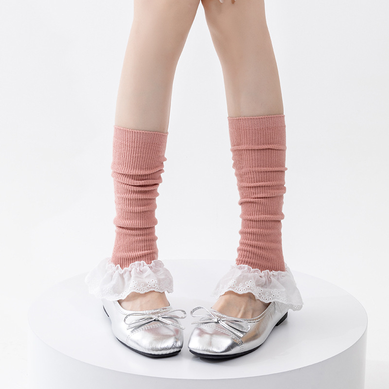 Scaldamuscoli Bootshang Calzini in cotone per donna con doppio ago in pizzo in tessuto a metà tubo Lolita con risvolto in pile Scaldamuscoli svasati in stile balletto dolce