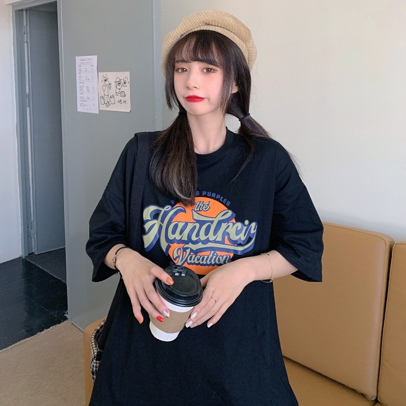 Loose fitting Korean women's clothing, oversized couple's clothing, best friend's clothing, base coat, women's summer casual short sleeved T-shirt, women's