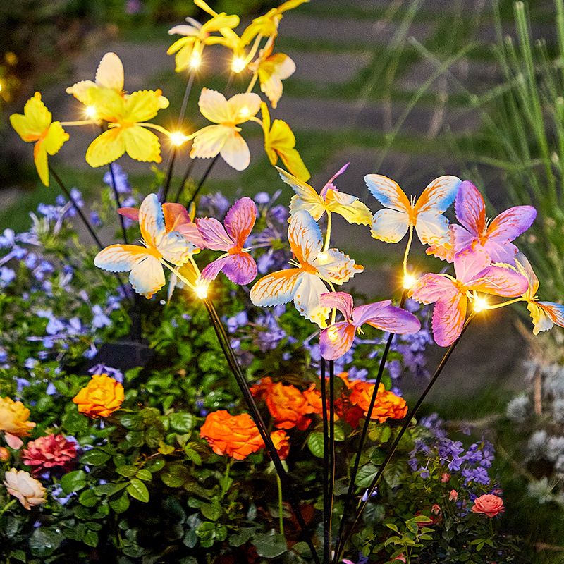 Luce solare a forma di farfalla, con spina da pavimento, simulazione di fiori, luce a farfalla, luce LED per esterni, impermeabile, da giardino e prato