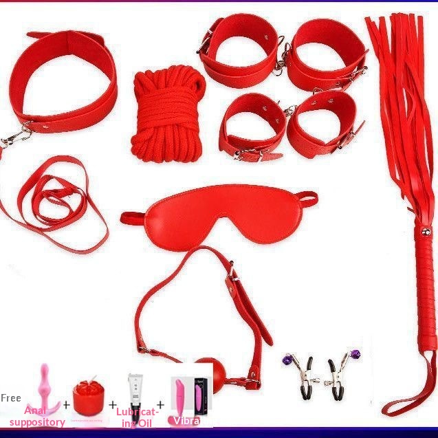 luckyqqyp SM Peluche Sexy Toys Set di Addestramento Bondage Dieci Pezzi Frusta Manette Manette per Piedi Plug Anale Punizione Provocante