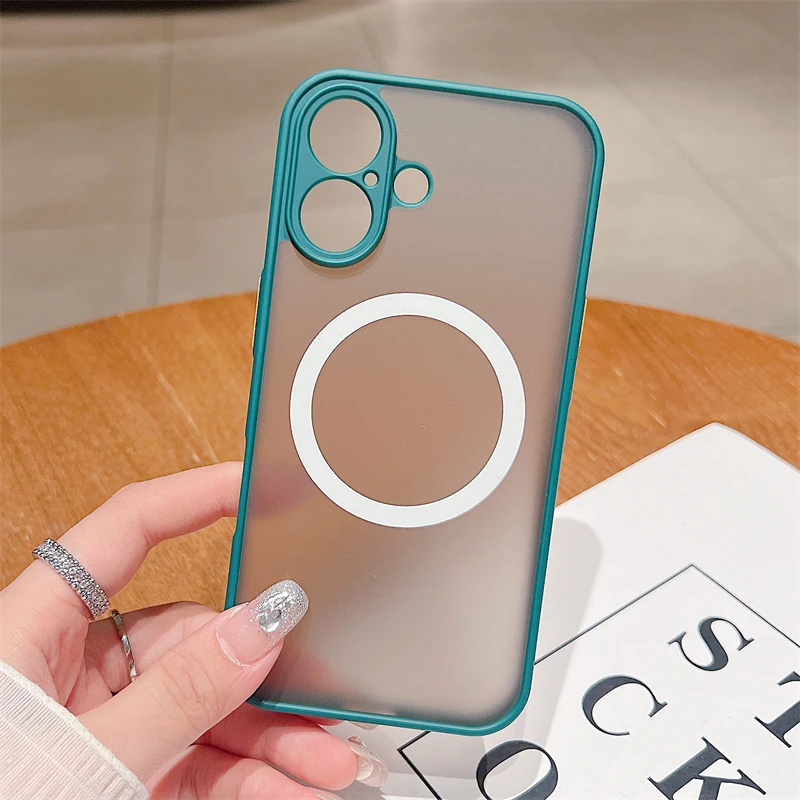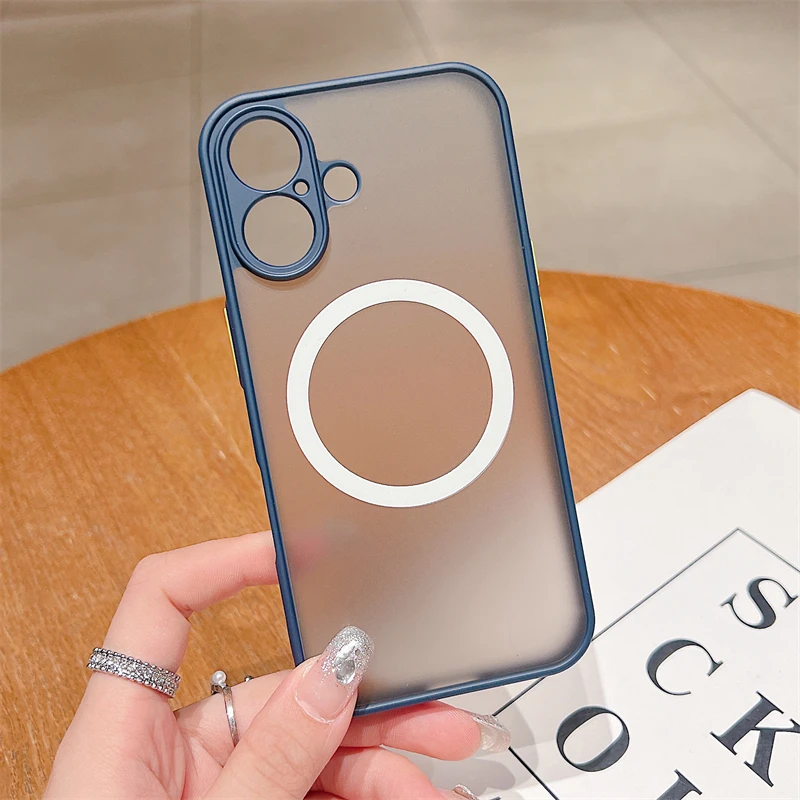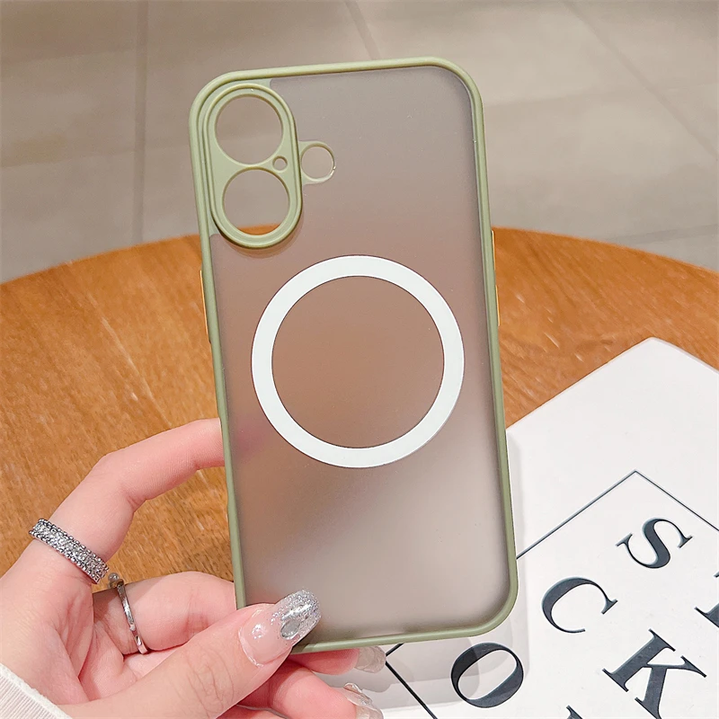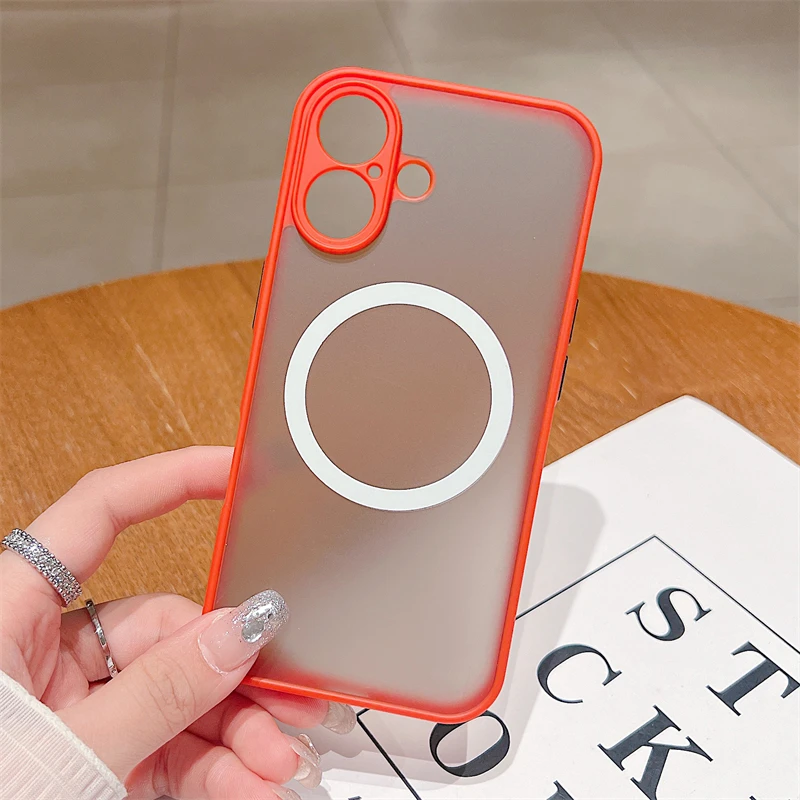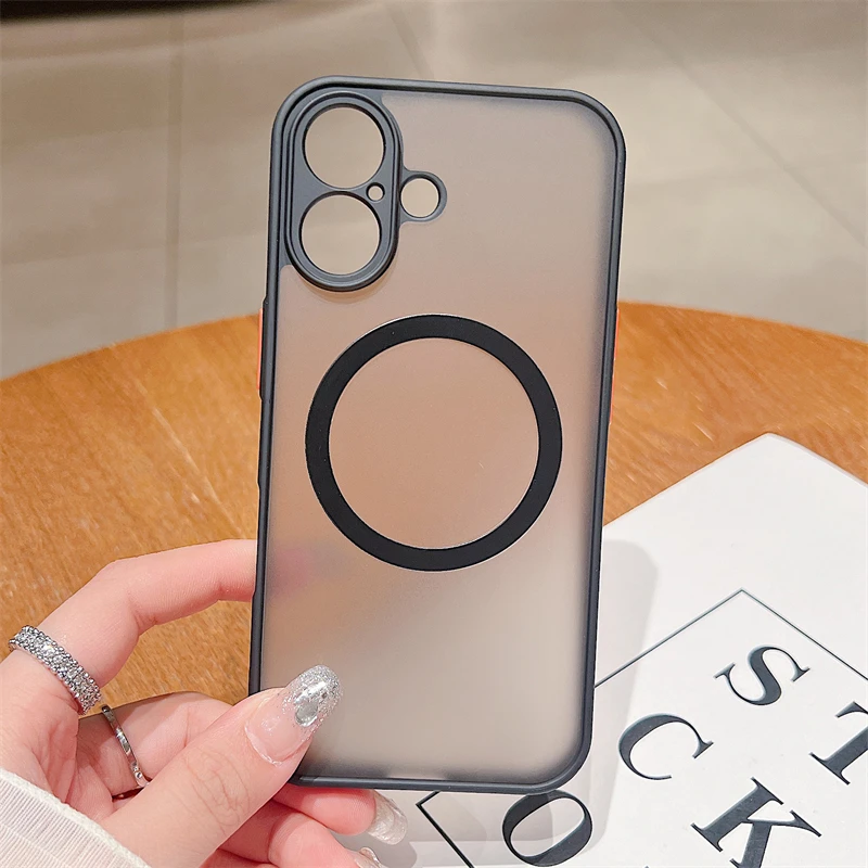 Custodia magnetica opaca di lusso Magsafe per iPhone 11 12 13 14 15 16 Pro Max X XS XR 7 8 Plus con ricarica wireless, trasparente, rigida per PC