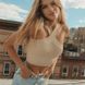 Maglia corta da donna BM sexy con scollo a croce, da indossare sia all'esterno che all'interno con una canotta di base.