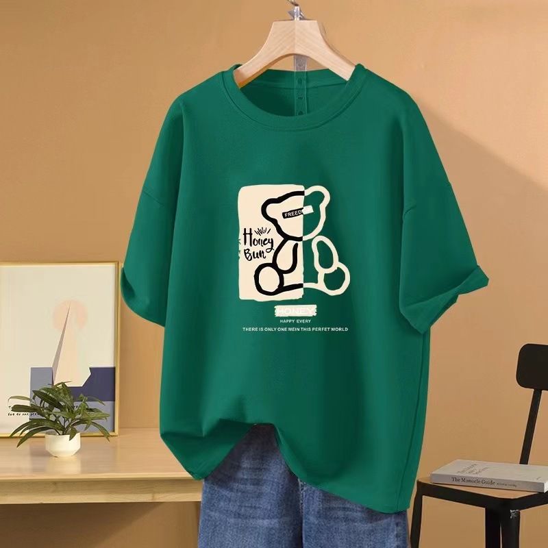 Bear Cotton Short Sleeve T-Shirt for Women Summer 2025 New Style Student Loose Casual Plus Size Top 8