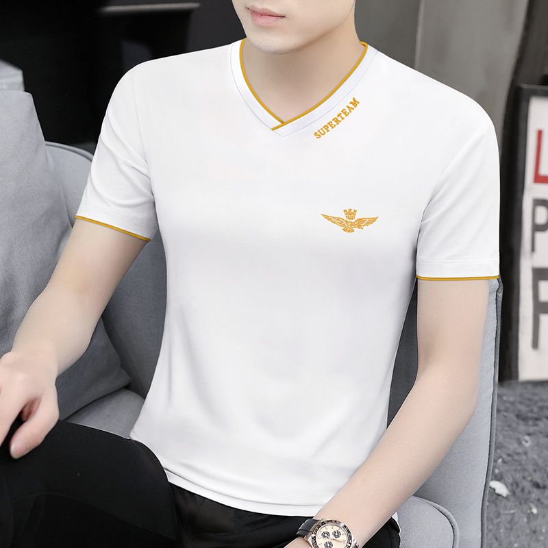 Ice Silk Modal 2025 New Men's Ice Silk Short sleeved T-shirt V-neck Summer Ice Sensation Speed Drying Top Bottom Shirt