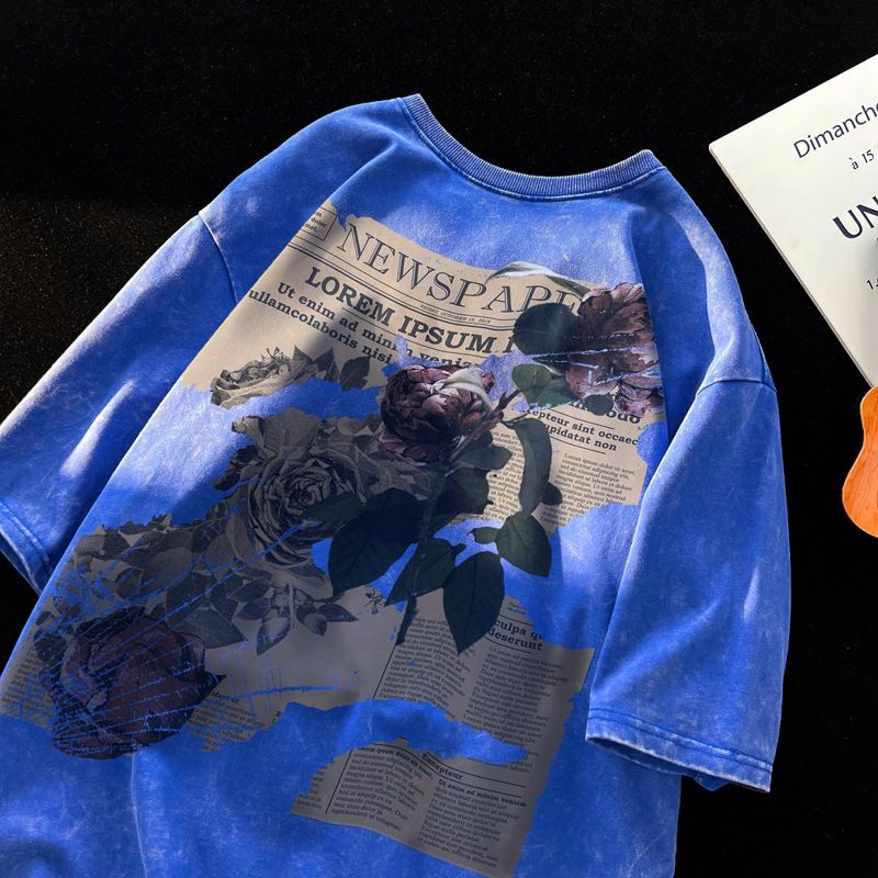 Maglietta a maniche corte lavata di qualità imbattibile del marchio di moda versatile americano per uomo, modello High Street, maniche oversize 5, maniche divise