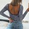 Maglietta a maniche lunghe a righe con schiena scoperta per donna: top aderenti eleganti e sexy con design a contrasto di colore
