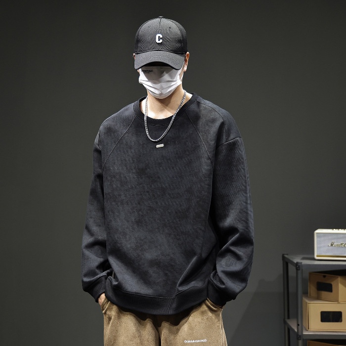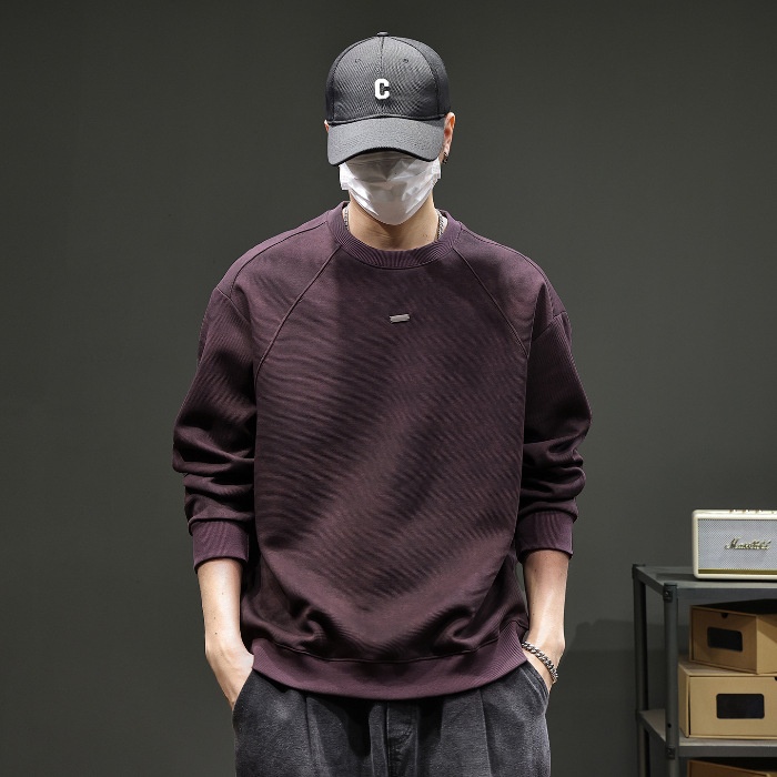 Product Source Category:In Stock,Brand:Bai Lang,Item Number:2838,Year/Season of Release:Autumn 2025,Is it a set or not?:No,Style:Korean Style,Bargain Category:Youth Fashion 18-24 Years Old,Design 1:Pullover,With or without liner:No liner,Collar Style:Collarless,Neckline shape:Round Neck,Sleeve Length:Long Sleeve,Is it hooded or not?:Without a hood,Front placket:other,Thickness:Average,Error margin:other,Suitable for the season:Spring and Autumn Season,Is it in stock?:yes,Inventory Type:Complete order,Main fabric composition:Cotton,Content of the main fabric components:47% cotton, 53% polyester fiber,Fabric Name:Cotton Blend,Applicable Scenarios:Everyday,Pattern:other,Design details:other,Design:Loose Fit,Craftsmanship:other,Color:Black, apricot, purple,Size:M,L,XL,2XL,3XL,4XL,5XL,Suitable for everyone:Youth,Sleeve Style:other,Pocket Design:other,Original Design Source:No,Is there a quality inspection report?:No,Quality Inspection Report Number:other,Gram weight:180g included - 250g excluded,Suitable age group:adult,Applicable Gender:Male,Product Category:Fleece Sweatshirt