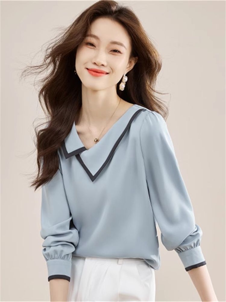 Maglietta a maniche lunghe primavera e autunno da donna 2025, nuova camicia chic e bella, temperamento francese, top versatile primavera e autunno