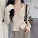 Maglietta base in maglia con colletto polo in stile francese per donna, cardigan sottile per autunno e inverno, vestibilità slim interna lunga