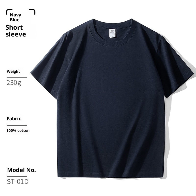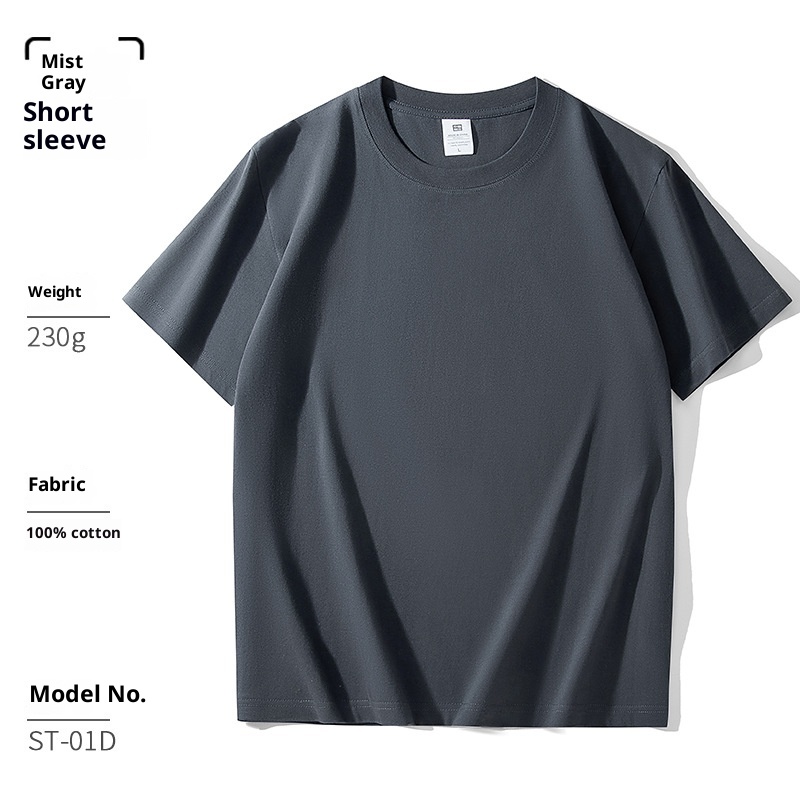 Style:Basic Popular,Item Number:ST-01D-3,Main fabric composition:Cotton,Pattern:Solid Color,Design 1:Straight Cut,Product Source Category:In Stock,Suitable for everyone:Youth,Bargain Category:Youth Fashion 18-24 Years Old,Design:Pullover,Collar Style:Round Neck,Sleeve Length:Short Sleeve,Is it hooded or not?:Without a hood,Thickness:Average,Brand:American Eagle,Suitable for the season:Four Seasons,Error margin:1.5CM,Is it in stock?:yes,Inventory Type:Complete order,Year/Season of Release:Spring 2025,Fabric Name:100% Cotton,Content of the main fabric components:100%,Applicable Scenarios:Everyday,Design details:Knitted Sleeves,Print Theme:Customization/DIY,Craftsmanship:High-Temperature Styling,Color:White - 230g high-performance selection, Ice Blue - 230g high-performance selection, Navy Blue - 230g high-performance selection, Pink Beige - 230g high-performance selection, Maple Red - 230g high-performance selection, Seagull Gray - 230g high-performance selection, Black - 230g high-performance selection, Coffee Color - 230g high-performance selection, Khaki Color - 230g high-performance selection, Lotus Purple - 230g high-performance selection, Sparrow Green - 230g high-performance selection, Mist Gray - 230g high-performance selection, Haze Blue - 230g high-performance selection, Apricot Color - 230g high-performance selection, Cherry Blossom Pink - 230g high-performance selection,Size:S recommended for size 47.5-52.5kg , M recommended for size 52.5-62.5kg , L recommended for size 62.5-70kg , XL recommended for size 70-77.5kg , 2XL recommended for size 77.5-85kg , 3XL recommended for size 85-92.5kg , 4XL recommended for size 92.5-100kg,Main downstream platforms:, , ,Main sales regions:Africa, Southeast Asia, Middle East,We have authorized private labels available:yes,Is it exclusively for cross-border export supply?:yes,Category:T-shirt Tank Top,Sleeve Style:Regular,Original Design Source:yes,Is there a quality inspection report?:No,Quality Inspection Report Number:2018DS0361,Gram weight:230g,Material function:High color fastness,Suitable age group:adult,Applicable Gender:Male,Product Category:T-shirt