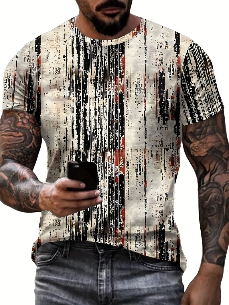 Maglietta casual ed elegante da uomo con stampa a righe, scollo rotondo e maniche corte, ideale per abbigliamento estivo e per attività all'aperto.