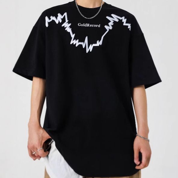 Maglietta corta da uomo a maniche corte, stile casual, ampia e larga, da strada americana, per uomo, estate 2025