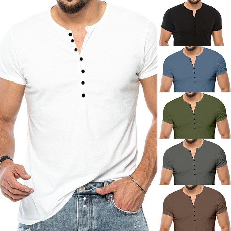 Maglietta estiva a maniche corte da uomo Henry, nuova e di alta qualità, con bottoni, tinta unita, in vendita a prezzi imbattibili