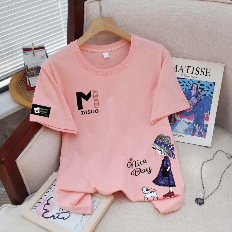 Summer short sleeved printed pure cotton white t-shirt, T-shirt women's top, high-end feeling, summer oversized mom's t-shirt