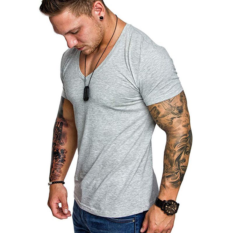 Summer casual men's V-neck short sleeved T-shirt fashionable short sleeved T-shirt solid color base shirt