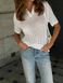 Maglietta estiva da donna, a maniche corte, in maglia cava bianca, di colore puro, versatile, da donna