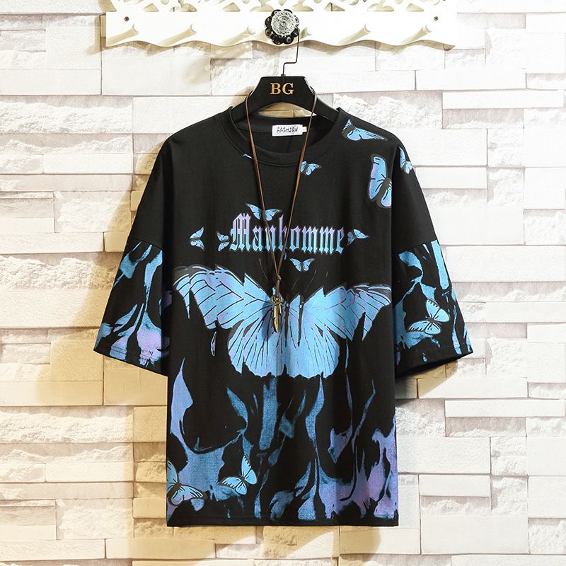 Maglietta estiva da uomo alla moda, corta, semplice, ampia e versatile, con stampa, a mezza manica.