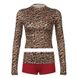 Maglietta pullover a maniche lunghe con scollo rotondo a contrasto e stampa patchwork leopardata, vita alta e pantaloncini svasati Basic