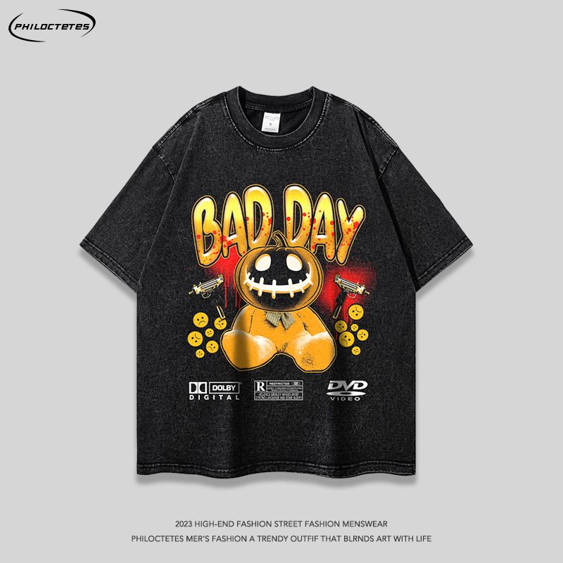 Maglietta pullover con stampa di cartoni animati "Diavolo Hip Hop" in stile cinese, per uomini e donne, da lavare con acqua per creare vecchie coppie di strada, a maniche corte