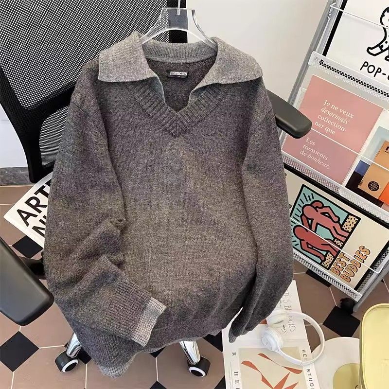 Maglione a collo alto girevole in due pezzi, tinta unita, stile coreano invernale, versatile, ampio e casual, lavorato a maglia