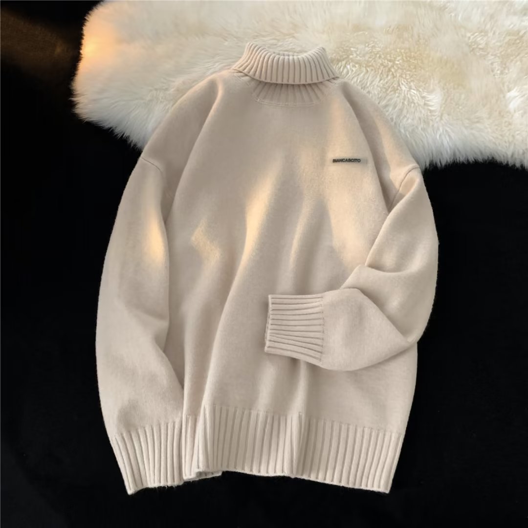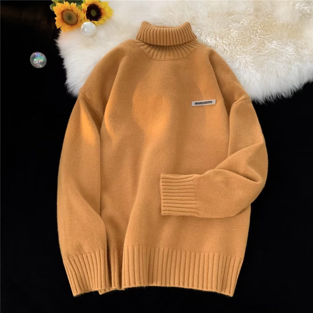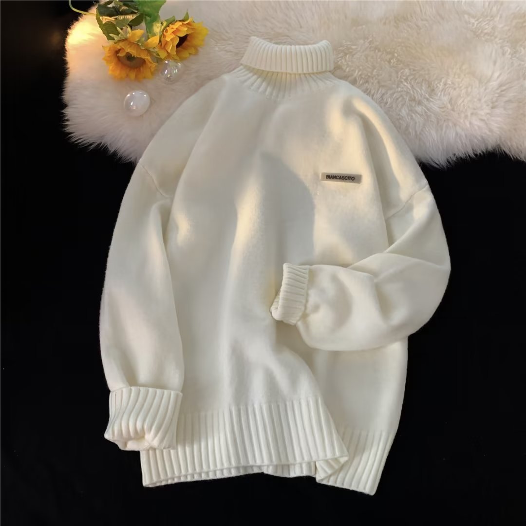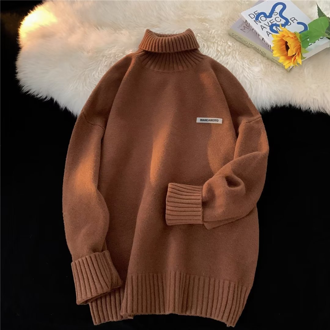 American style high neck sweater for men in autumn and winter, thick, loose, lazy style, high-end feeling, knitted sweater for warmth and inner wear