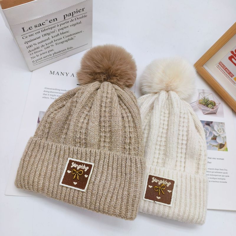 Thickened Fleece-Lined Warm Winter Knit Hat for Women Korean Style Versatile Pom-Pom Pullover Hat New Winter Knitted Hat