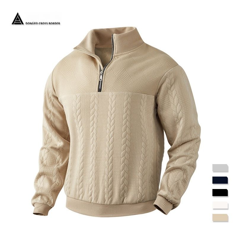 American casual stand up collar zipper pullover loose knit patchwork jacquard autumn and winter long sleeved sweatshirt