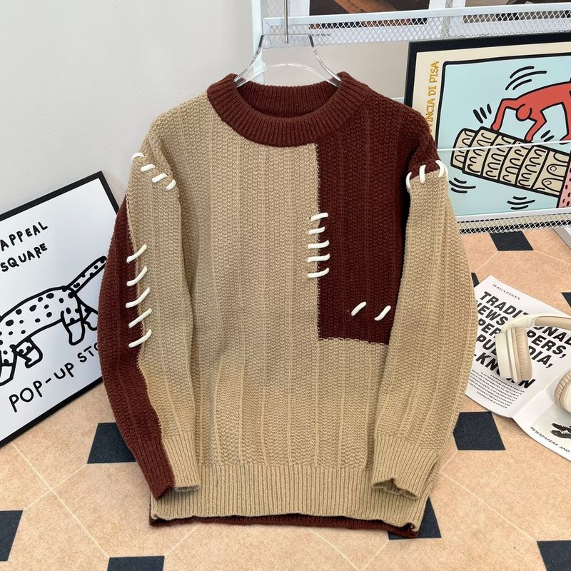 Unique Irregular Design Patchwork Color-Block Sweater Unisex Loose Knit Pullover Casual Sweater