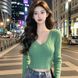 Maglione corto versatile a maniche lunghe da donna, con scollo a V, autunno e inverno, dal design nuovo, vestibilità slim, lavorato a maglia