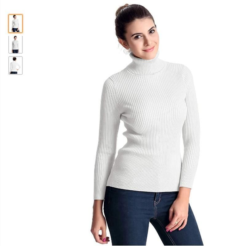 Maglione da donna autunno 2021 lavorato a maglia tinta unita slim fit con collo alto e maniche lunghe