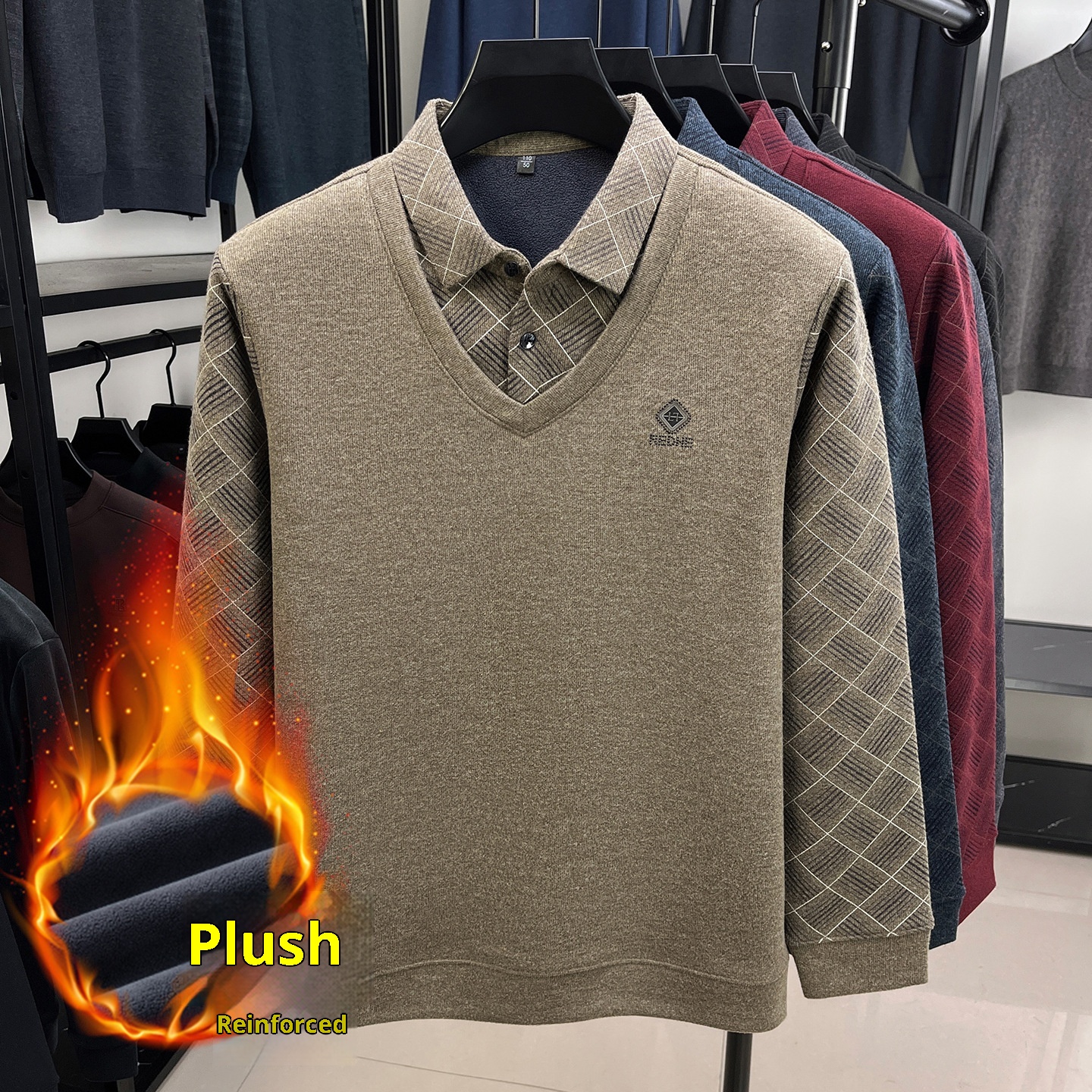 Maglione da uomo Boy Boy con fodera in lana di pecora e pile, design a due pezzi ispessito, nuovo modello 2025, base calda invernale_voghion.com